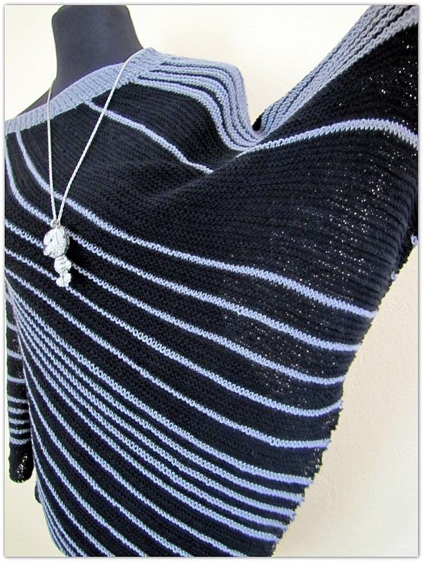 No oczywiście jeden czarny motek Divy okazał się zbyt małą ilością na moje potrzeby więc wyciągnęłam z czeluści szafy "Ibizę" i przerabiałam na zmianę pasami z "Divą", bo się lekko odcieniami różniły.